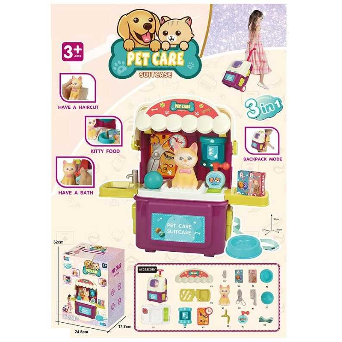 • Набір з тваринами 16884 D (12) “Кошеня”, 17 ігрових елементів, валіза з колесами, в коробці
