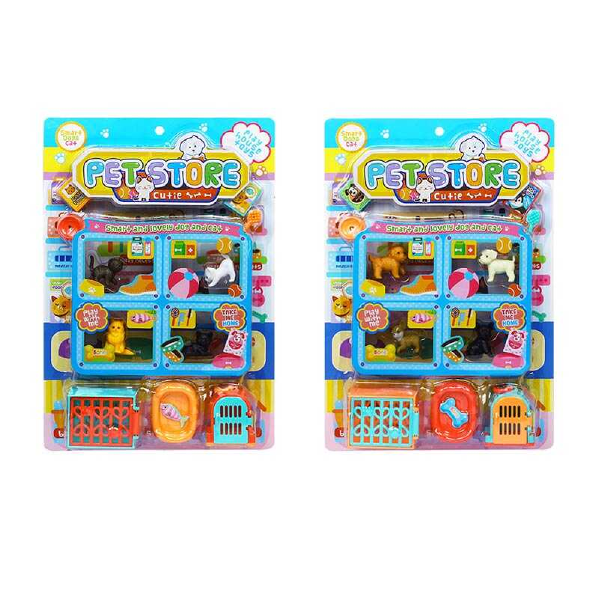 Набір тварин 878-75 A (60) 2 види, 4 фігурки тварин, переноски, мисочки, корм, на листі