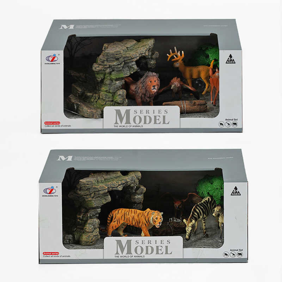 Набір тварин Q 9899 Y-75 (12) “Дикі тварини“, 2 види, 7 елементів, 4 фігурки тварин, аксесуари, в коробці