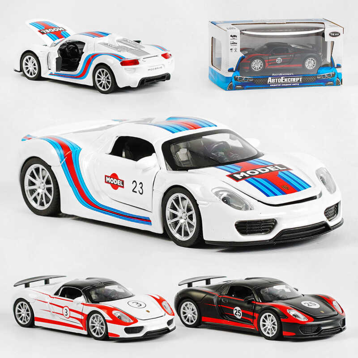 • Машина металопластикова 68791 (72/2) “Авто Експерт“, 3 види, 1:32, світло, звук, інерція, відчиняються двері, багажник, капот, в коробці