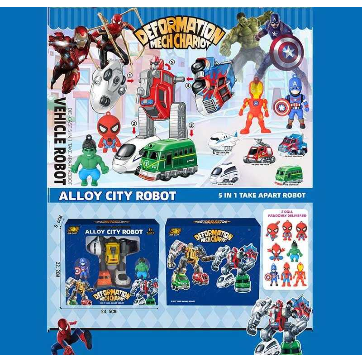 Трансформер 1986-218 (48) 5 машинок, металопластик, інерційні механізми, гумові шини, рухливі елементи, фігурки героїв, в коробці