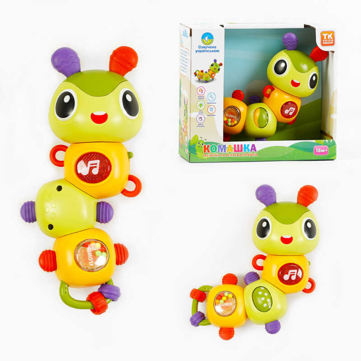 Брязкальце музичне “Комашка“ ТК 93622 (48) “TK Group“, ОЗВУЧУВАННЯ УКРАЇНСЬКОЮ МОВОЮ, пісні, підсвічування, тріскачка, прорізувачі, в коробці