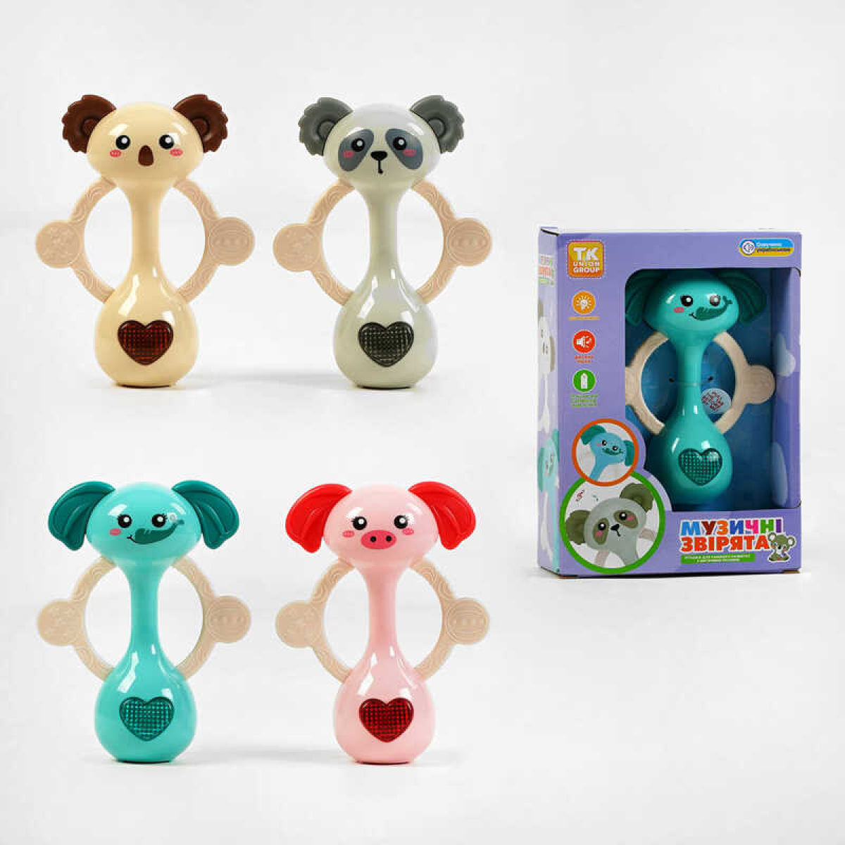 Брязкальце на батарейках “Музичні звірята” TK - 51625 (96) “TK Group“, 4 кольори, ОЗВУЧУВАННЯ УКРАЇНСЬКОЮ МОВОЮ, пісні, підсвічування, в коробці, МІКС