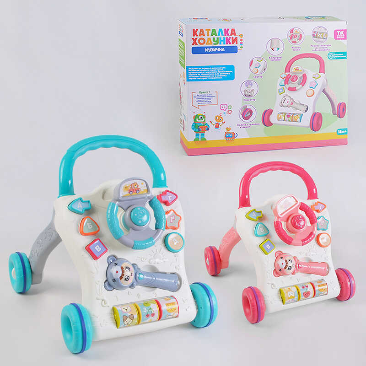 • Музичні ходунки-каталка 61925 (12/2) “TK Group“, 2 кольори, ОЗВУЧ. УКР. МОВОЮ, тріскачка, проектор, 3D підсвіч., 3 пісні, мелодії, сортер, у коробці