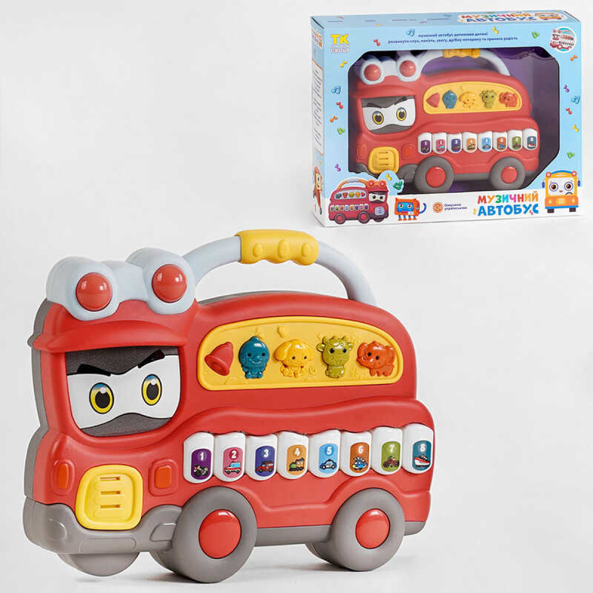Музичний автобус 91780-1 (72) “TK Group“, ОЗВУЧУВАННЯ УКРАЇНСЬКОЮ МОВОЮ, червоний колір, 4 режими, 4 мелодії, звук, світо, в коробці