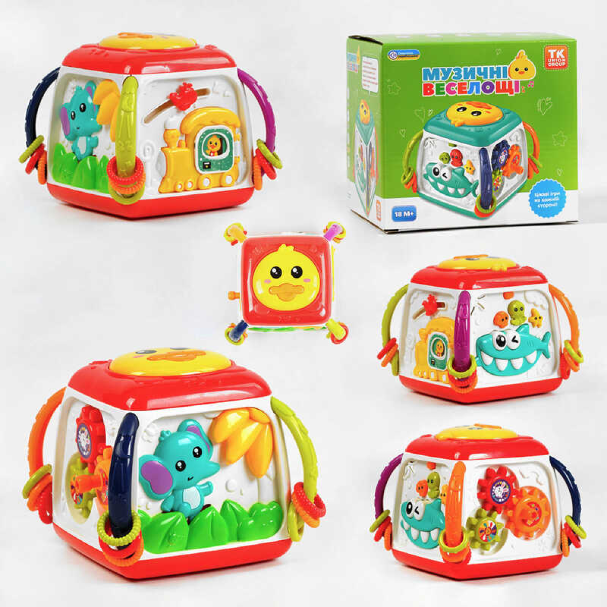 Музичний мультибокс “Музичні веселощі” TK - 20119 (48/2) “TK Group“, ОЗВУЧУВАННЯ УКРАЇНСЬКОЮ МОВОЮ, 4 пісні, 3 казки, мелодії, цифри, підсвічування, пальчикові ігри, звук барабана, рухомі шестерні, у коробці