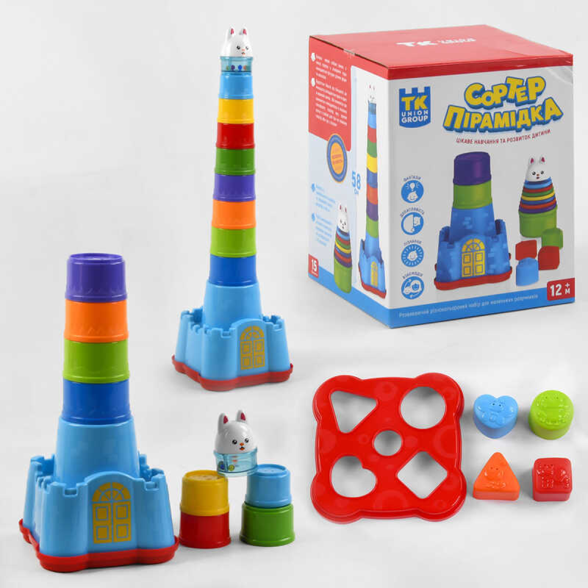 Пірамідка сортер 68318 (36/2) “TK Group“, 58 см, 15 елементів, брязкальце, в коробці