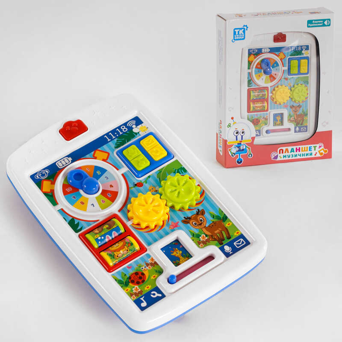 Планшет інтерактивний 90660 (24) “TK Group“, ОЗВУЧ. УКРАЇНСЬКОЮ МОВОЮ, підсвічування, казка, пісні, аналоговий годинник, тріскачка, шестерні, в коробці