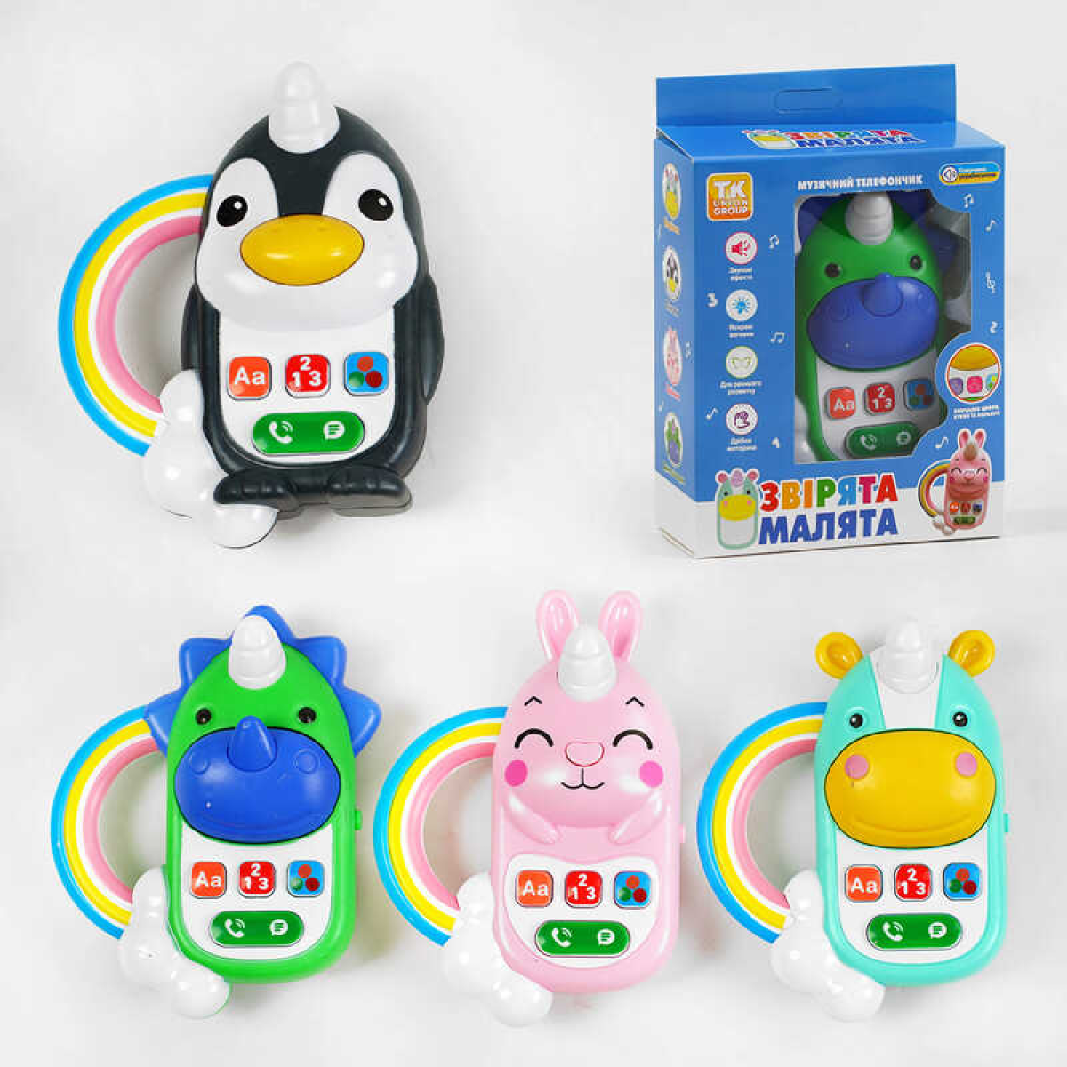 Телефон “Звірята-малята“ ТК - 80492 (72) “TK Group“, 4 види, ОЗВУЧУВАННЯ УКРАЇНСЬКОЮ МОВОЮ, алфавіт, цифри, кольори, пісні, в коробці, ВИДАЄТЬСЯ ТІЛЬКИ МІКС ВИДІВ