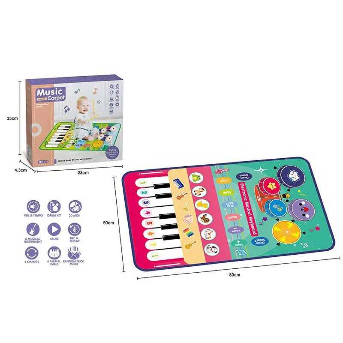 • Музичний килимок MTK 035-3 A (72/2) 80 х 3 х 54 см, на батарейках, музичні інструменти, барабани, звуки тварин, запис, режим пам“яті, музика, в коробці