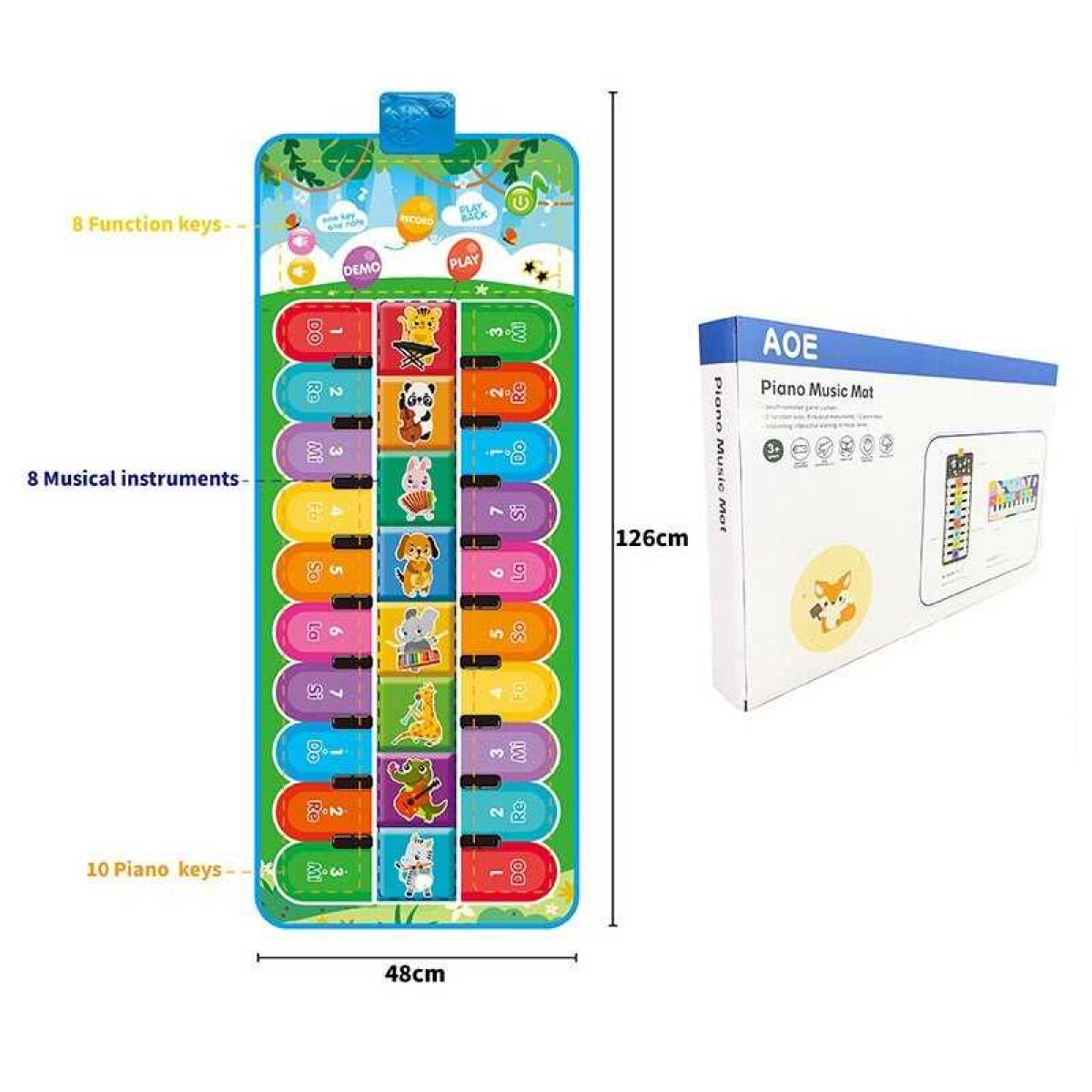 Килимок музичний 638-13 (24/2) 49 х 3 х 125 см, на батарейках, музичні інструменти, ноти, запис, режим пам“яті, музика, в коробці