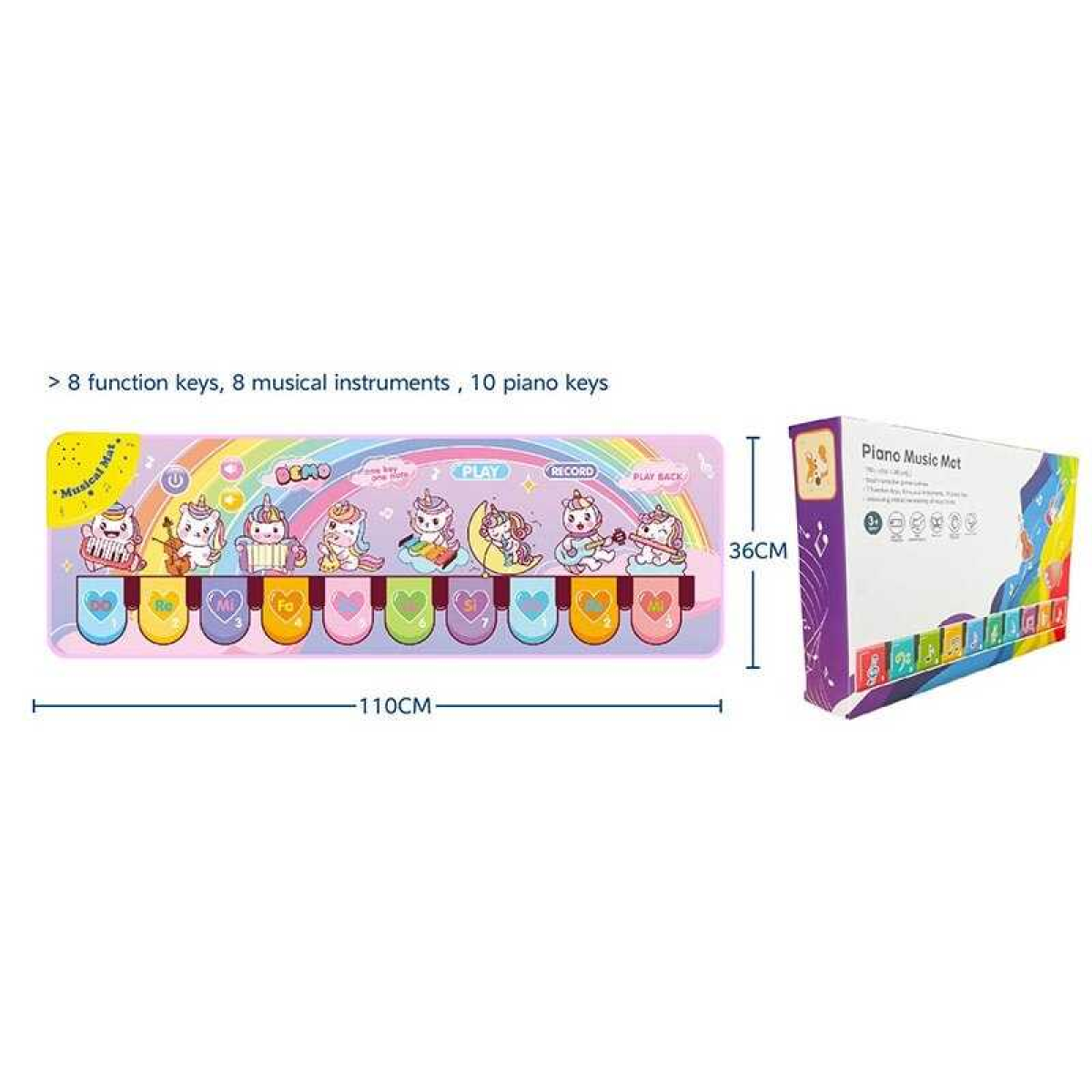 Килимок музичний 638-4 (36/2) 110х 3 х 36 см, на батарейках, музичні інструменти, ноти, запис, режим пам“яті, музика, в коробці