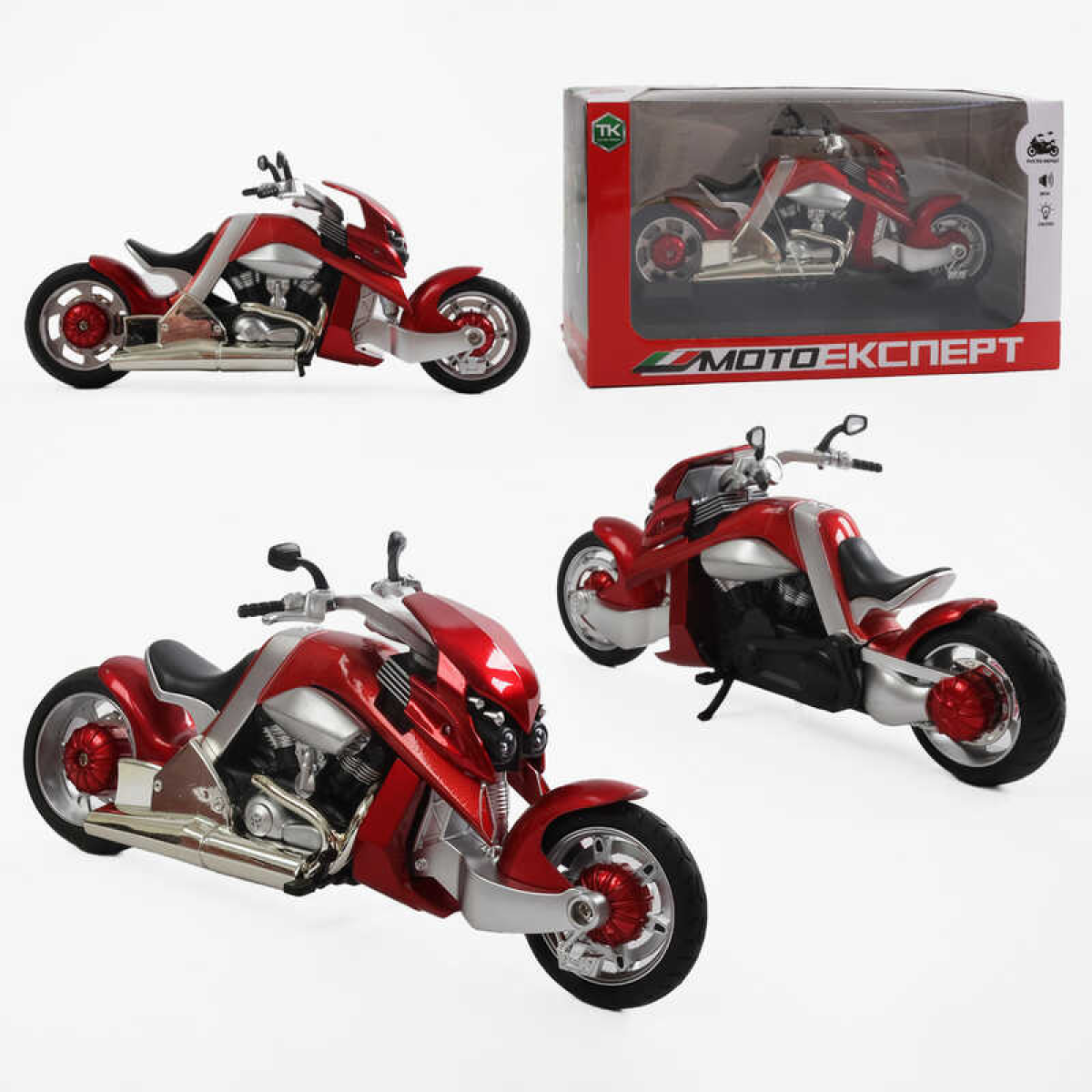 Мотоцикл BG 14-741 (48/2) “Мото Експерт“, металопластик, масштаб 1:12, прогумовані колеса, підсвічування, звук, амортизація, платформа, в коробці