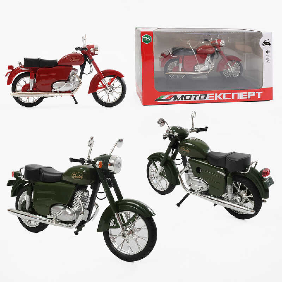 • Мотоцикл BG 30-902 (48/2) “Мото Експерт“, 2 кольори, металопластик, масштаб 1:12, прогумовані колеса, підсвічування, звук, амортизація, платформа,   в коробці