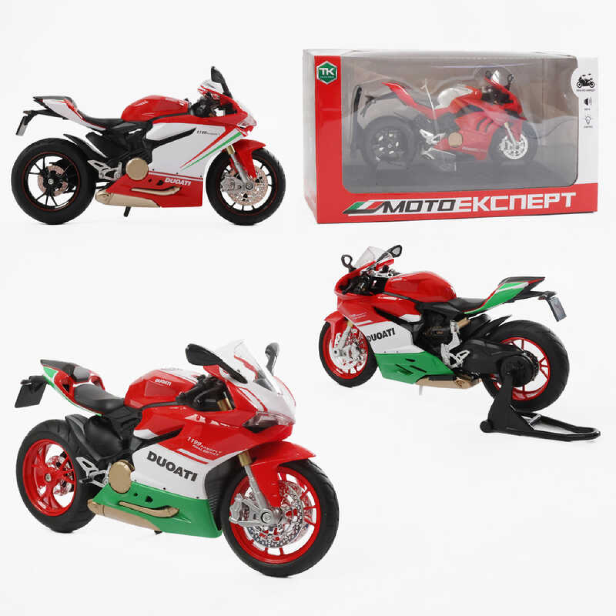 Мотоцикл BG 61-477 (48/2) “Мото Експерт“, 2 види, металопластик, масштаб 1:12, прогумовані колеса, підсвічування, звук, амортизація, платформа,в коробці
