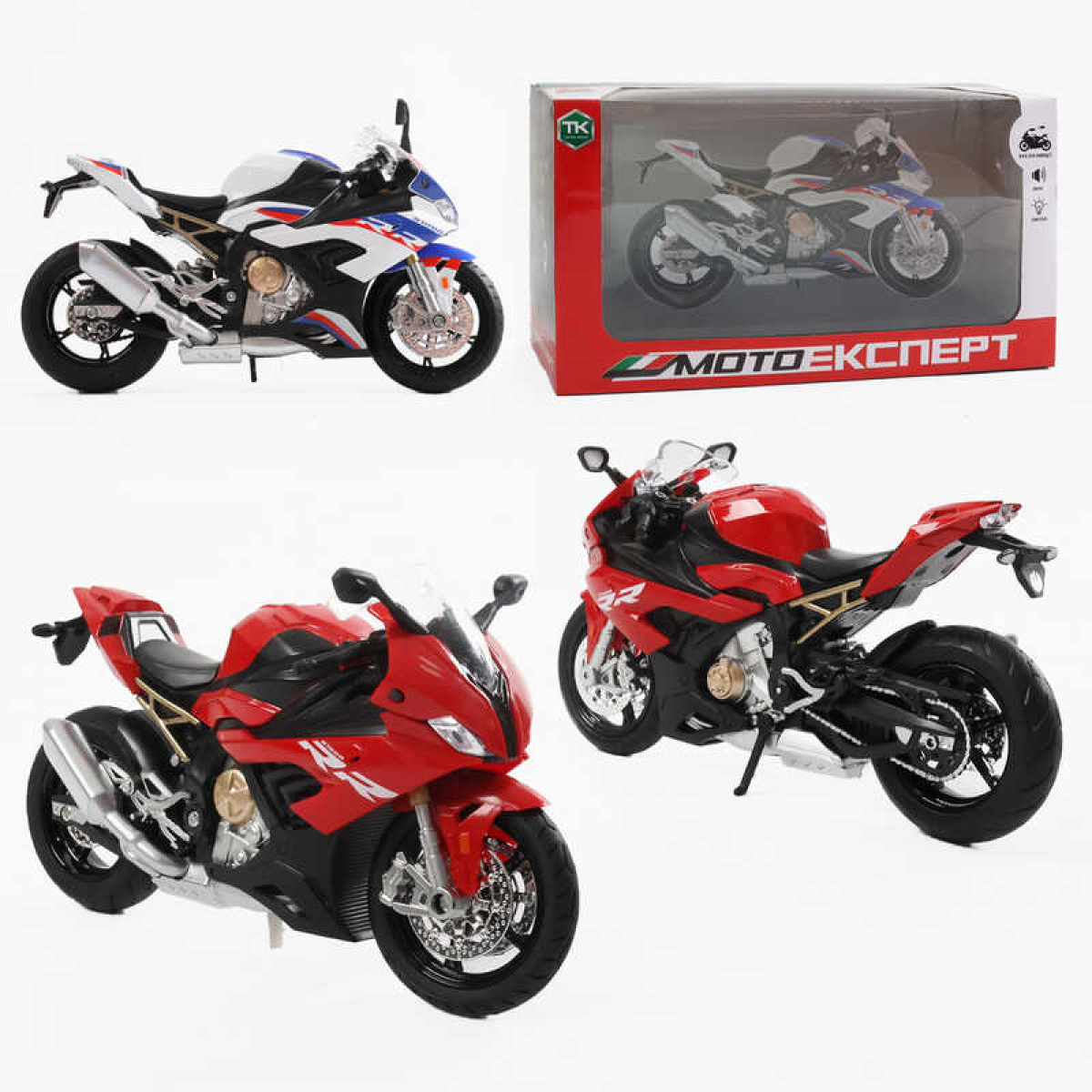 Мотоцикл BG 63-620 (48/2) “Мото Експерт“, 2 кольори, металопластик, масштаб 1:12, прогумовані колеса, підсвічування, звук, амортизація, платформа, в коробці