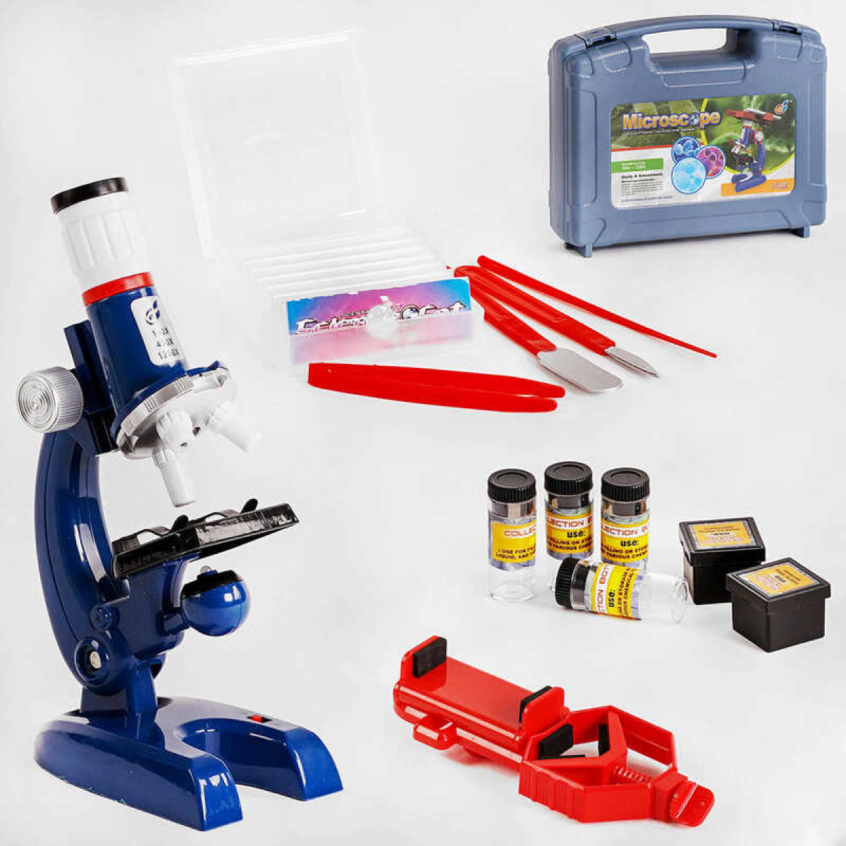 Мікроскоп С 2173 (12) підсвічування, контейнер з предметним склом, баночки, пластиковий тримач для телефону, у валізі