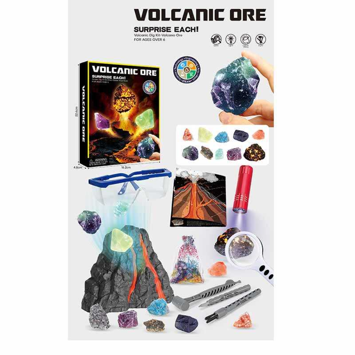 Розкопки 700 (24) гіпсовий блок, інструменти, захисні окуляри, збільшувальне скло, ліхтарик, в коробці