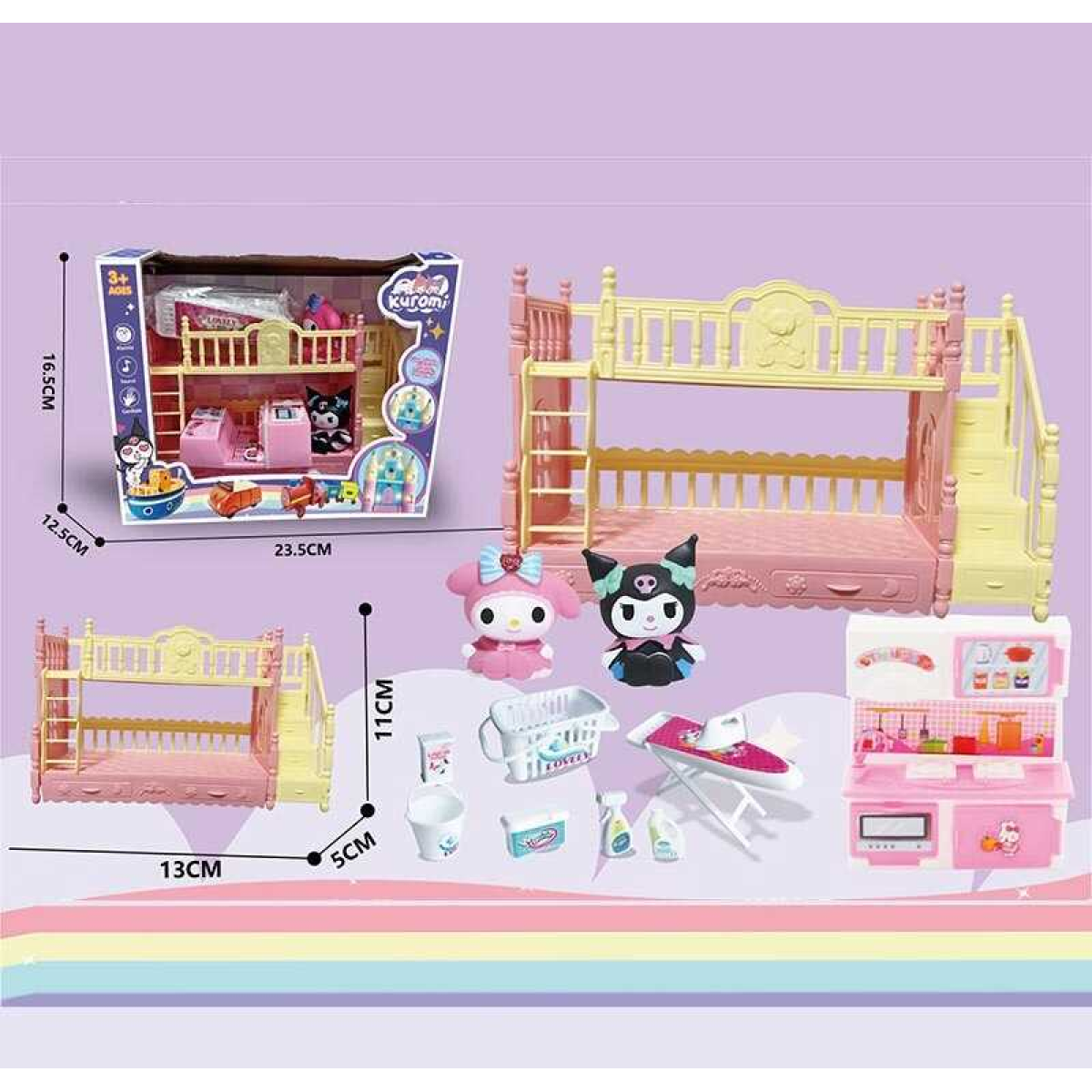 Набір героїв YQ 515 (48/2) 2 фігурки героїв, двоярусне ліжко, аксесуари, кухня, праска, прасувальна дошка, в коробці