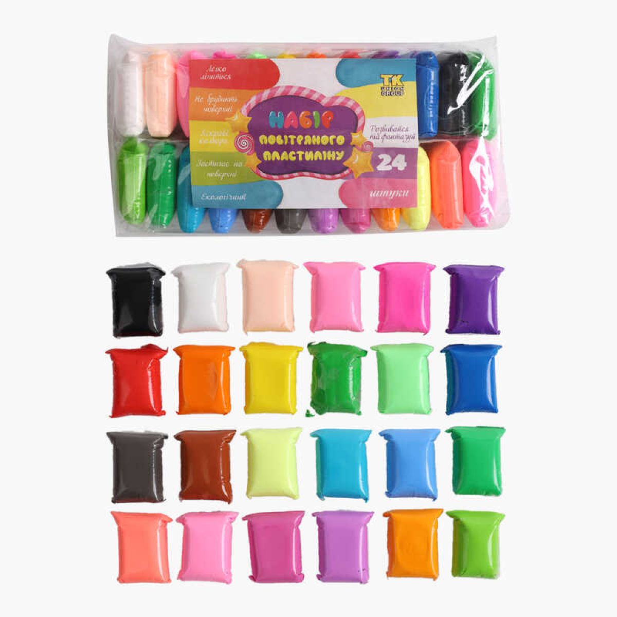 Повітряний пластилін C 73370 (100) “TK Group“, ЦІНА ЗА 24 ШТУКИ В УПАКОВЦІ, стеки, в пакеті
