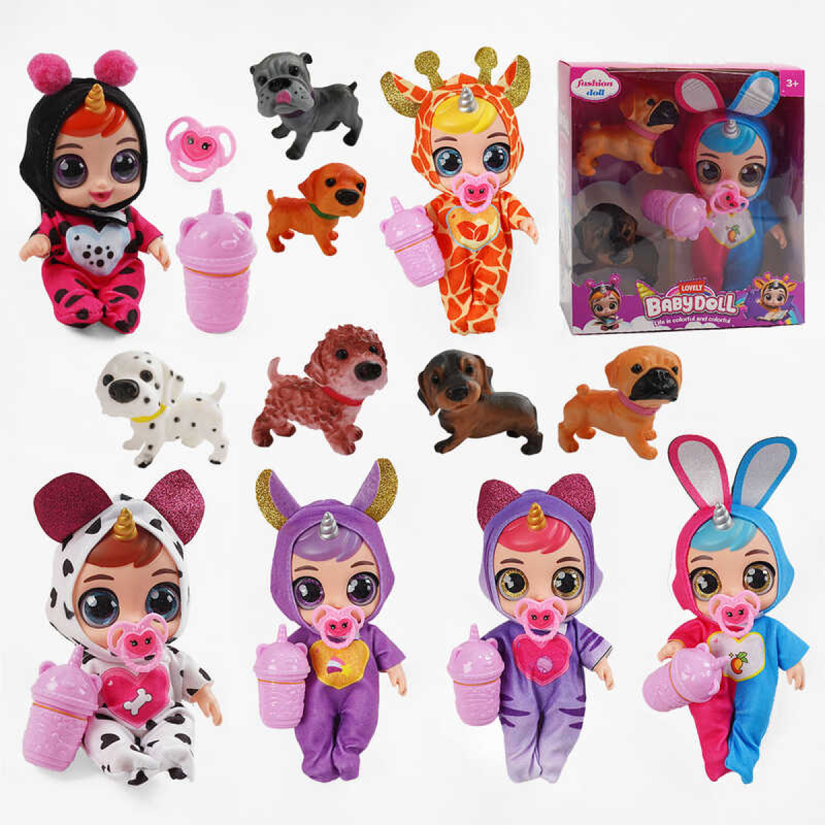 Лялька 216 (72/2) 6 видів, гумова, висота 20 см, говорить, сміється, плаче, знімний одяг, рухливі кінцівки, пляшечка, пустушка, 2 песики, в коробці, ВИДАЄТЬСЯ ТІЛЬКИ МІКС ВИДІВ
