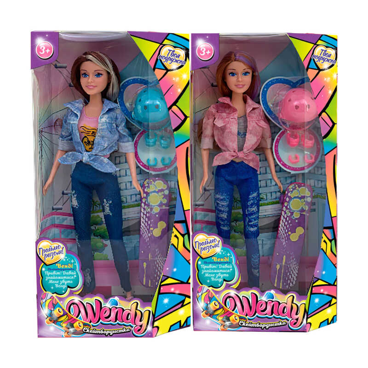 Лялька 43010 (24/2) “Wendy“, 2 види, “Скейтбордистка”, висота 30 см, скейт, шолом, аксесуари, в коробці