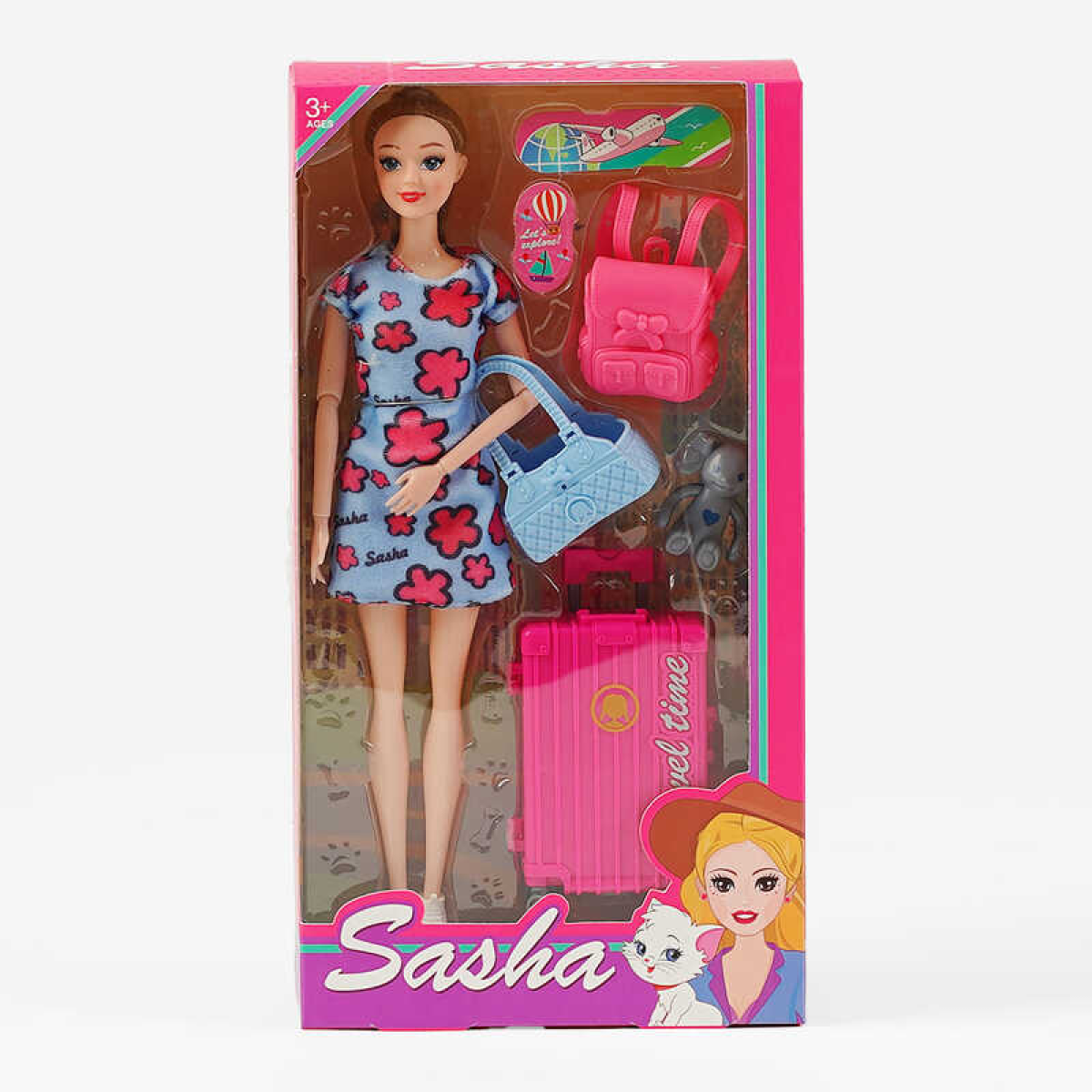 Лялька 51819 (60/2) висота 29 см, валіза, сумка, рюкзак, знімне взуття, в коробці