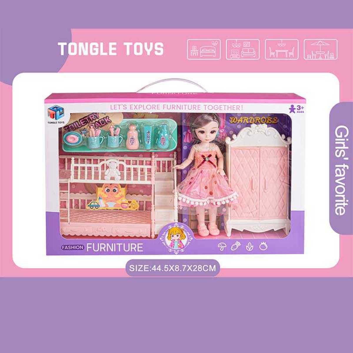 • Лялька 6688-15 (24) 22 см, імітація скляних очей, шарнірні суглоби, аксесуари, меблі, в коробці