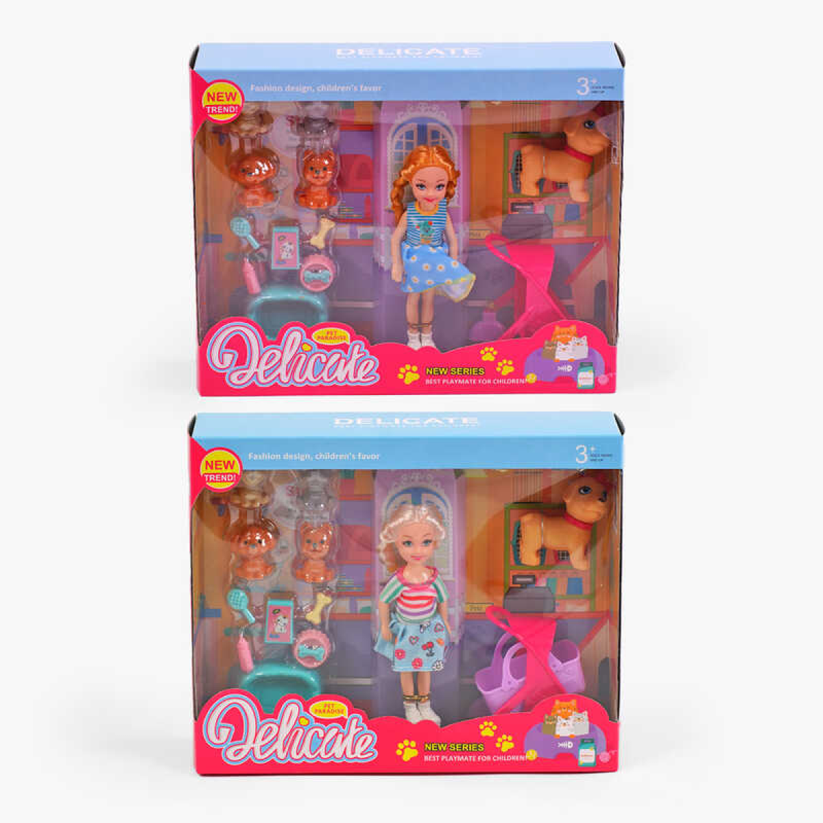 Лялька A 8-15 (96/2) 2 види, знімне взуття, аксесуари, улюбленці, візочок, в коробці