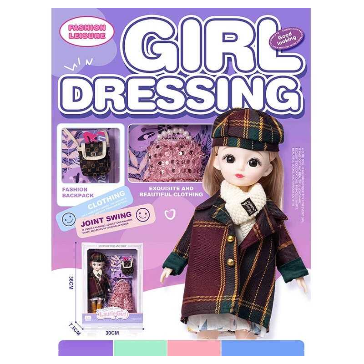 Лялька Q-A 36 (72/2) висота - 30 см, тіло — пластик, голова — гума, шарнірні з’єднання суглобів, знімне взуття, змінний одяг, аксесуари, в коробці