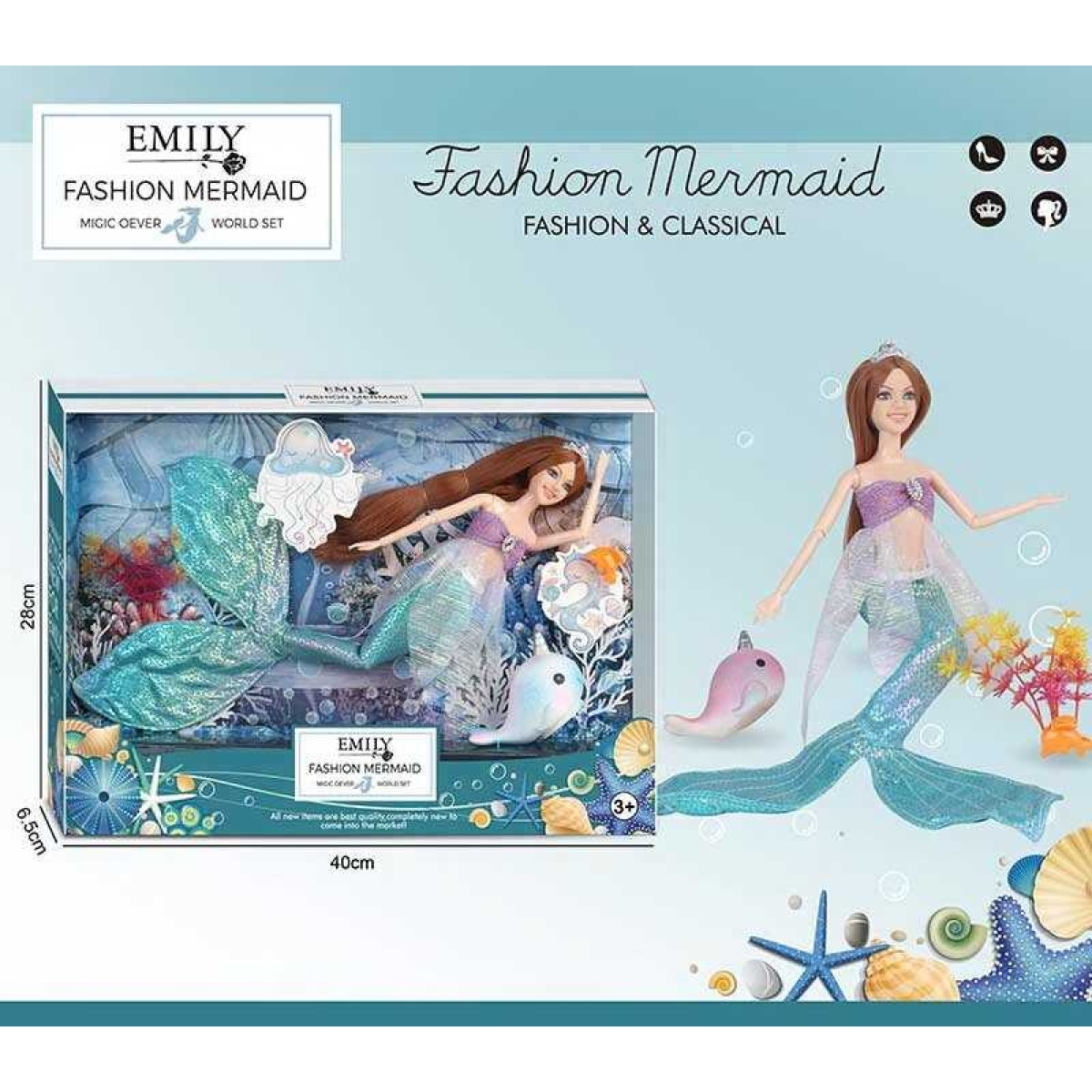 Лялька QJ 137 (36/2) “Русалонька“, висота 30 см, фігурка морського мешканця, у коробці