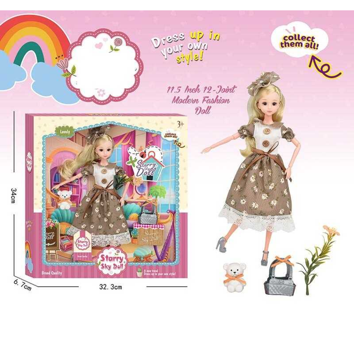 Лялька SK 023 C (36/2) висота 30 см, сумка, ведмедик, квітка, в коробці