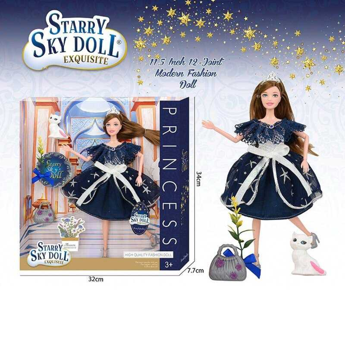 Лялька SK 025 B (48/2) висота 30 см, діадема, квіти, улюбленець, сумочка, в коробці