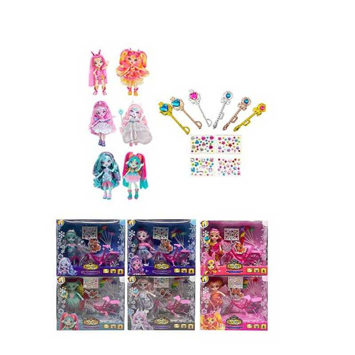 Лялька TK 2045 (96/2) 15 см, шарнірні суглоби, аксесуари, наліпки, велосипед, в коробці, ВИДАЄТЬСЯ МІКС ВИДІВ