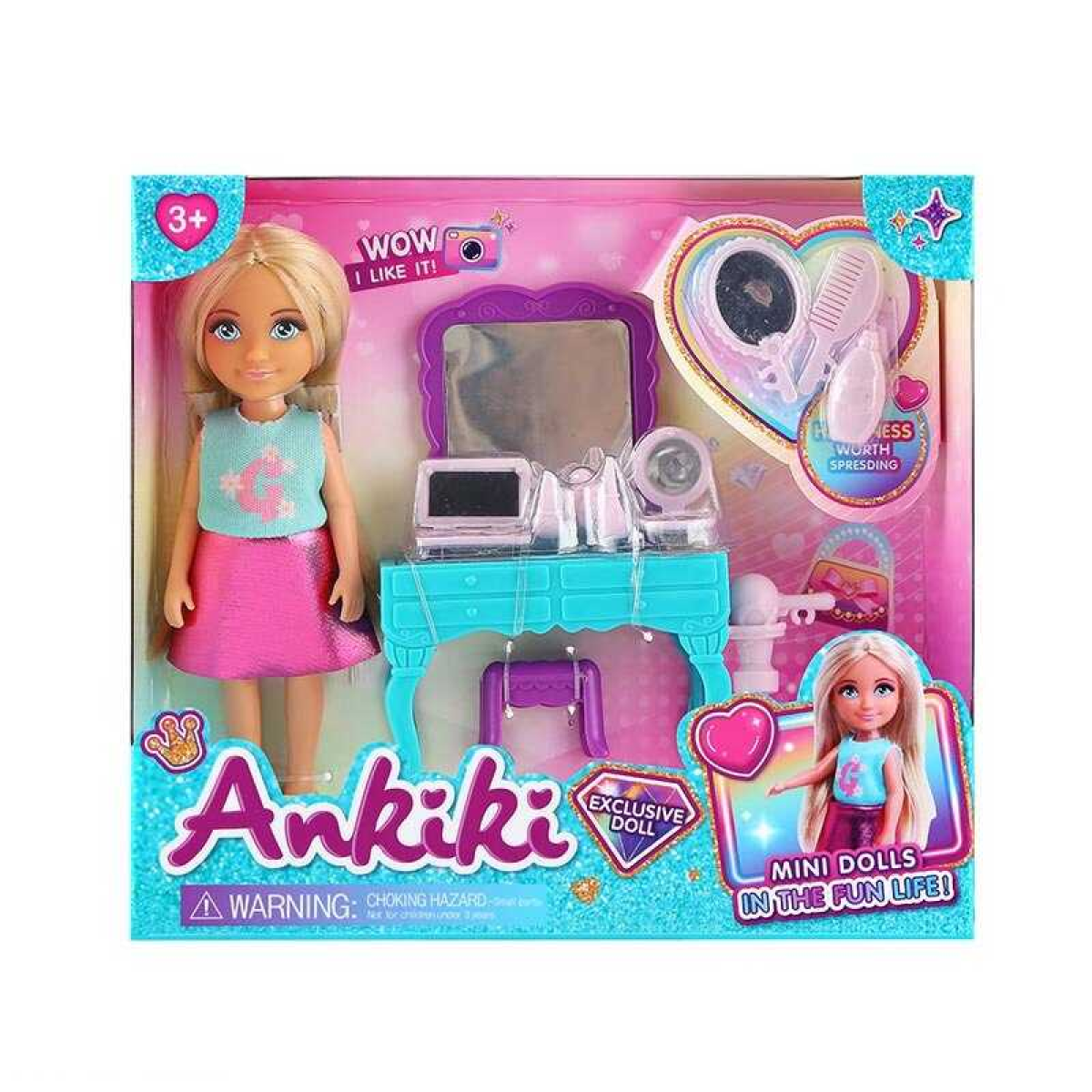 Лялька з аксесуарами 606002 (72) висота ляльки - 13 см, туалетний столик, стілець, дзеркало, аксесуари для волосся, в коробці