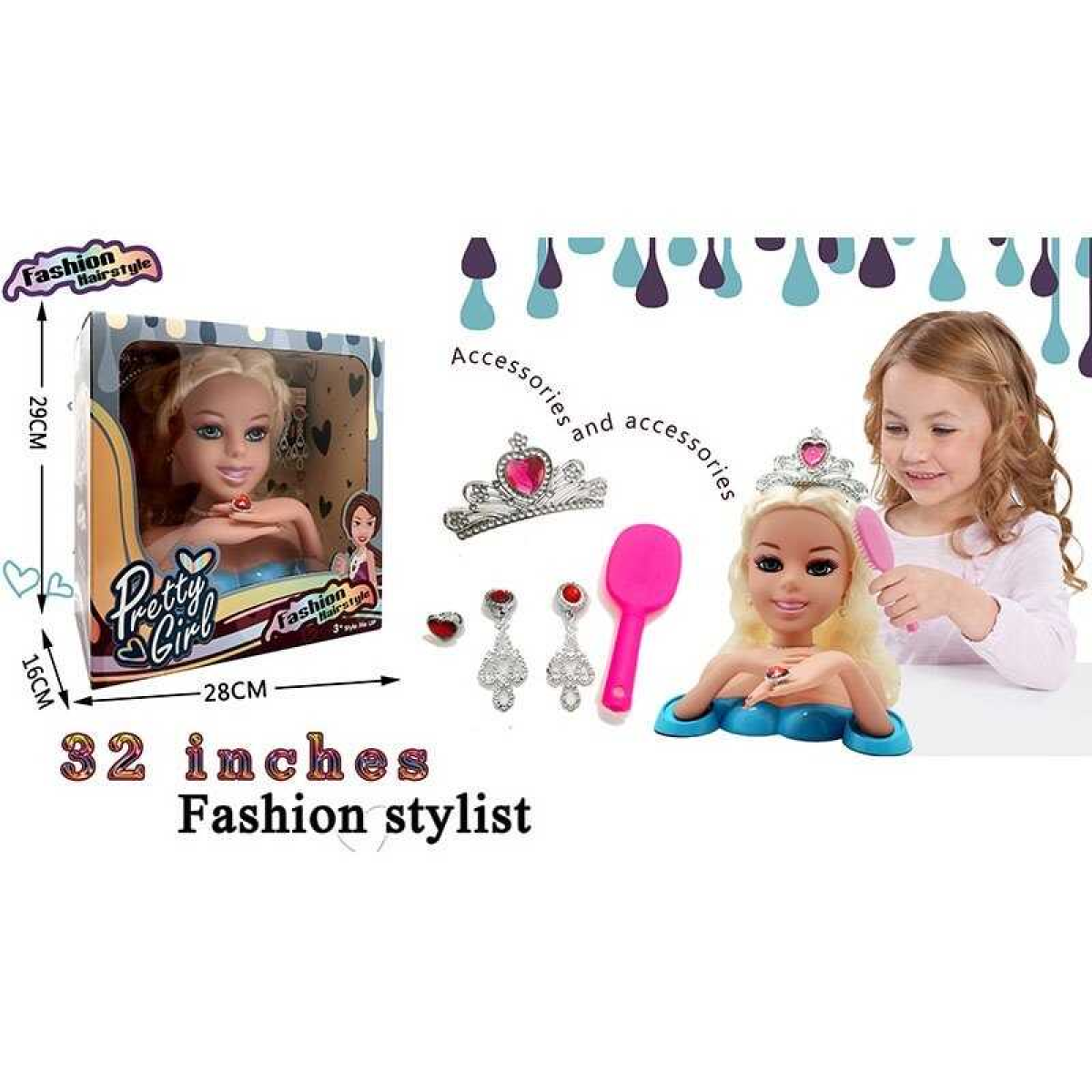 Манекен для зачісок 3397 (24/2) прикраси, щітка для волосся, в коробці