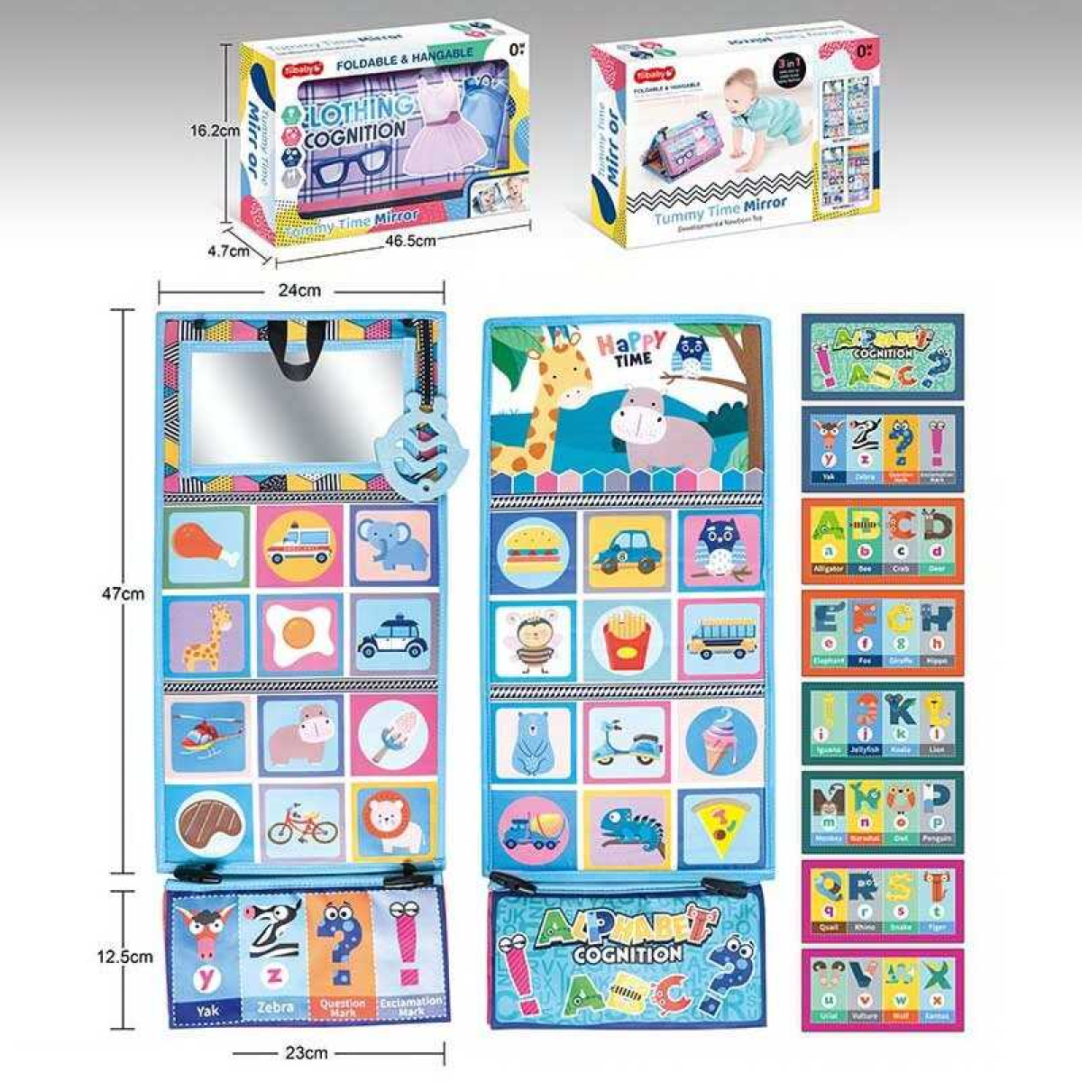 Розвивальний плакат 66540-1 (48) м’який, шелесткі елементи, прорізувач, безпечне люстерко, англійська абетка, в коробці
