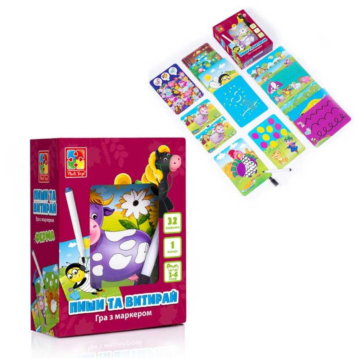 гр Гра настільна “Пиши та витирай. Ферма“ (укр) VT5010-19 (12) “Vladi Toys“, 34 магнітні елементи