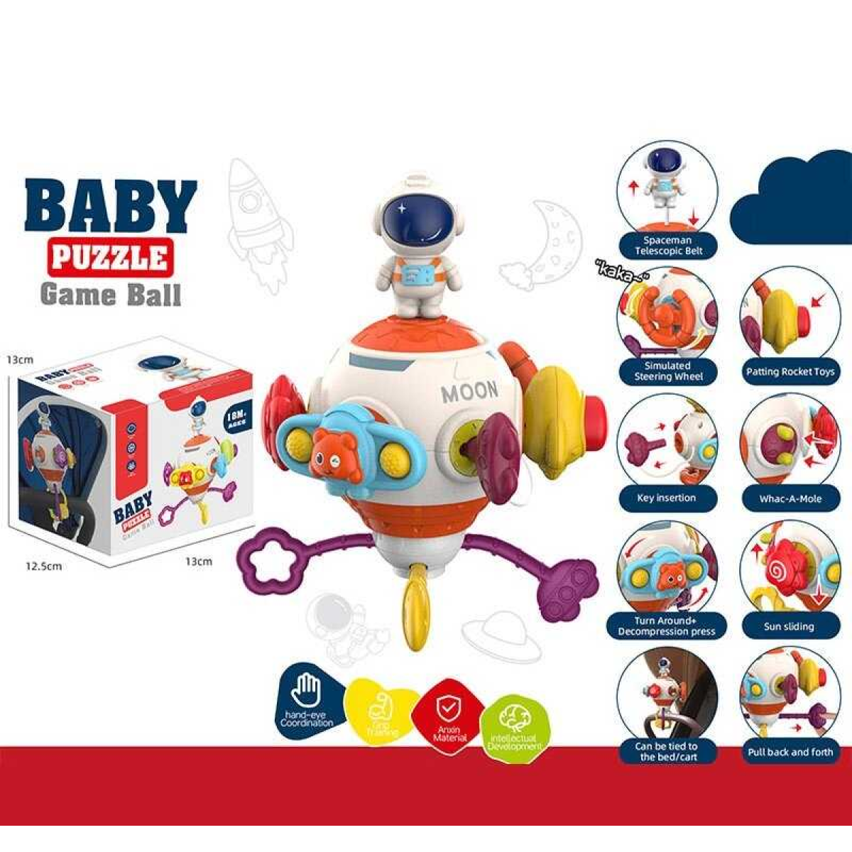 Бізіборд 666-1 (125) 8 забавок, тріскачка, гумові елементи для перетягування, пискавка, спінер, попіт, рухомі елементи, пальчикові ігри, в коробці