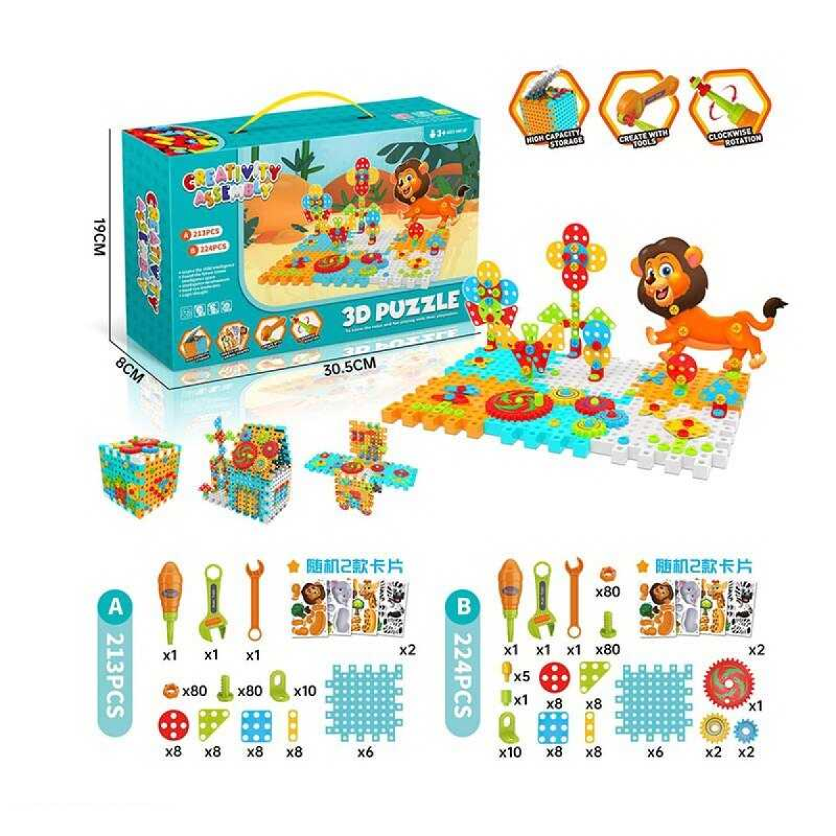 Мозаїка 021-1 B (48/2), 224 елементи, інструменти, рухливі шестерні, 2 картки з елементами тварин, в коробці