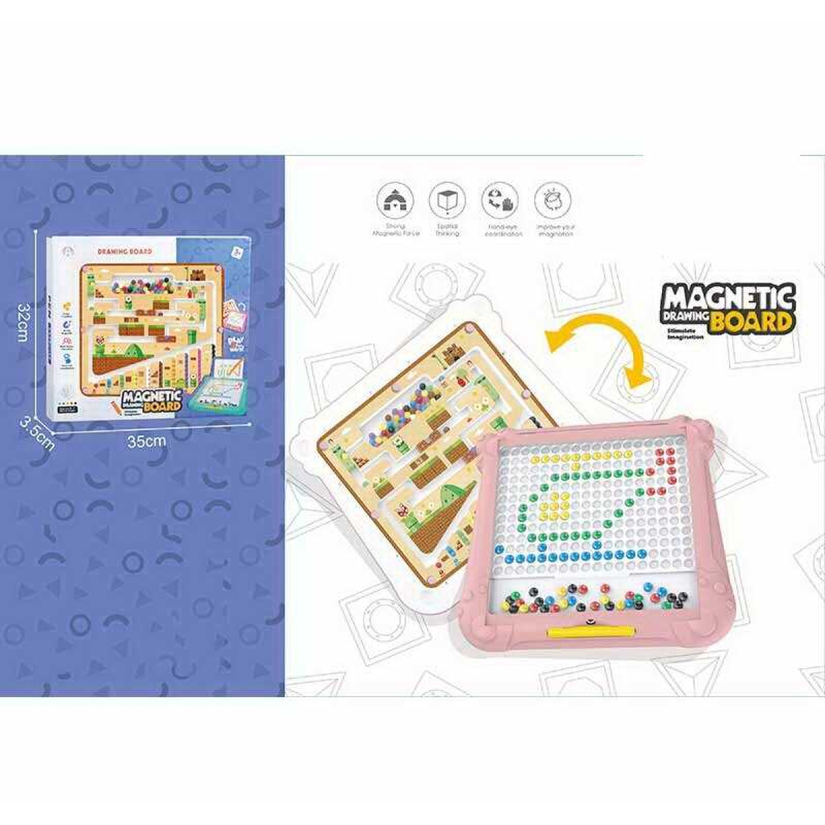 Мозаїка CH 1151 (24) магнітна, 2 варіанти гри, лабіринт, двостороння ігрова панель, магнітний стилус, двосторонні картки із завданнями, в коробці