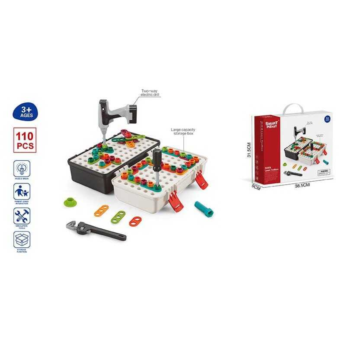 Мозаїка SY 029 (12) 110 деталей, електричний шуруповерт, викрутка, валізка, в коробці