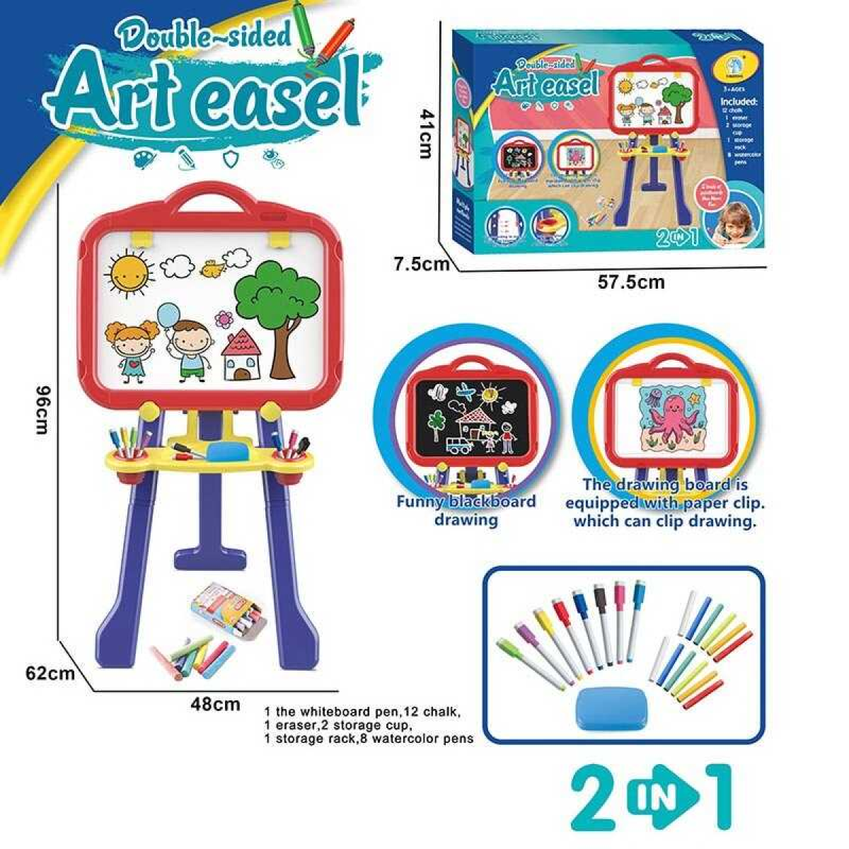 Мольберт YM 2202 (12) двостороння дошка,підставка, регульована висота, 8 маркерів, крейда 12 кольорів, в коробці