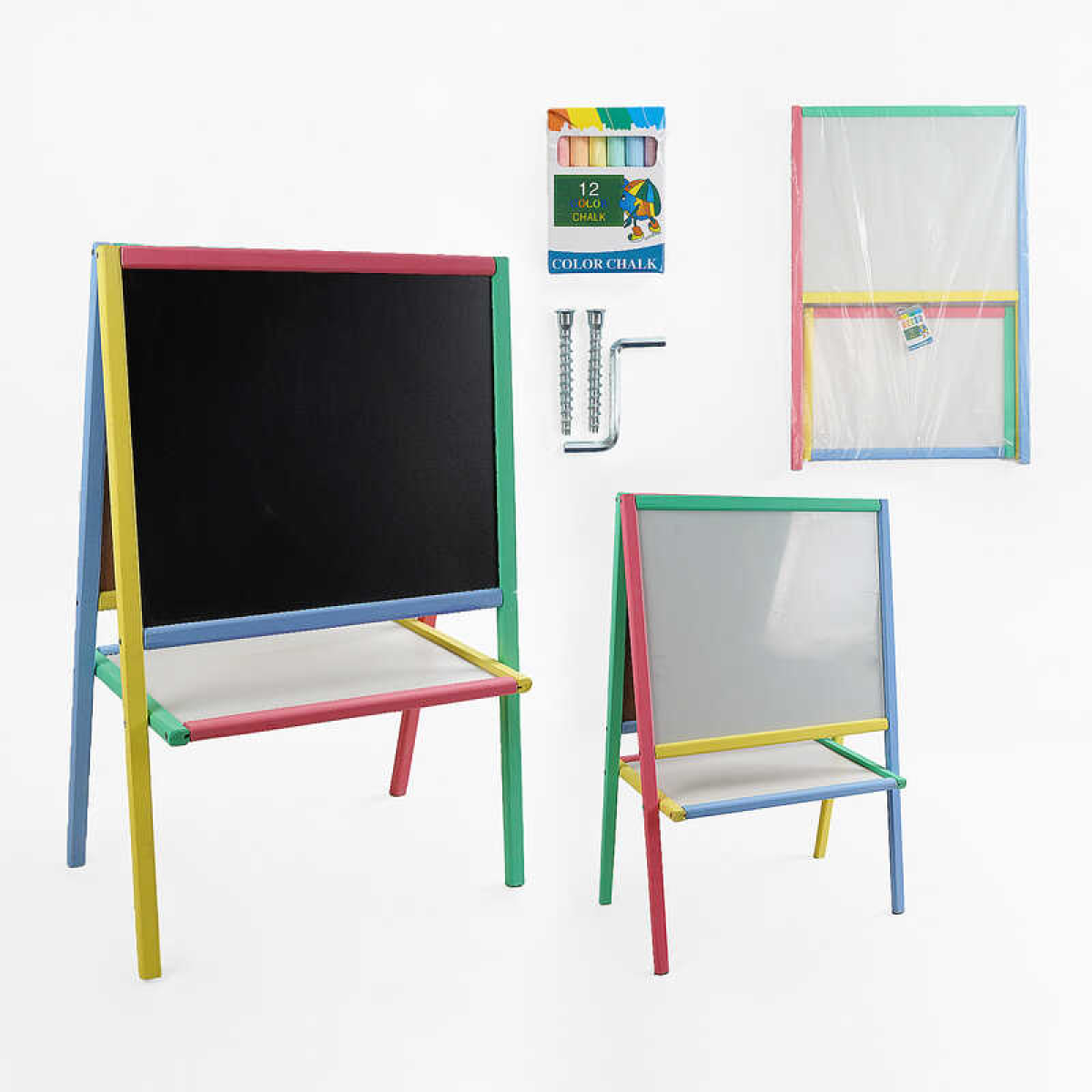 гр Мольберт 15625 маленький - кольоровий, 54х35х82 см, двосторонній, набір крейди, в пакеті