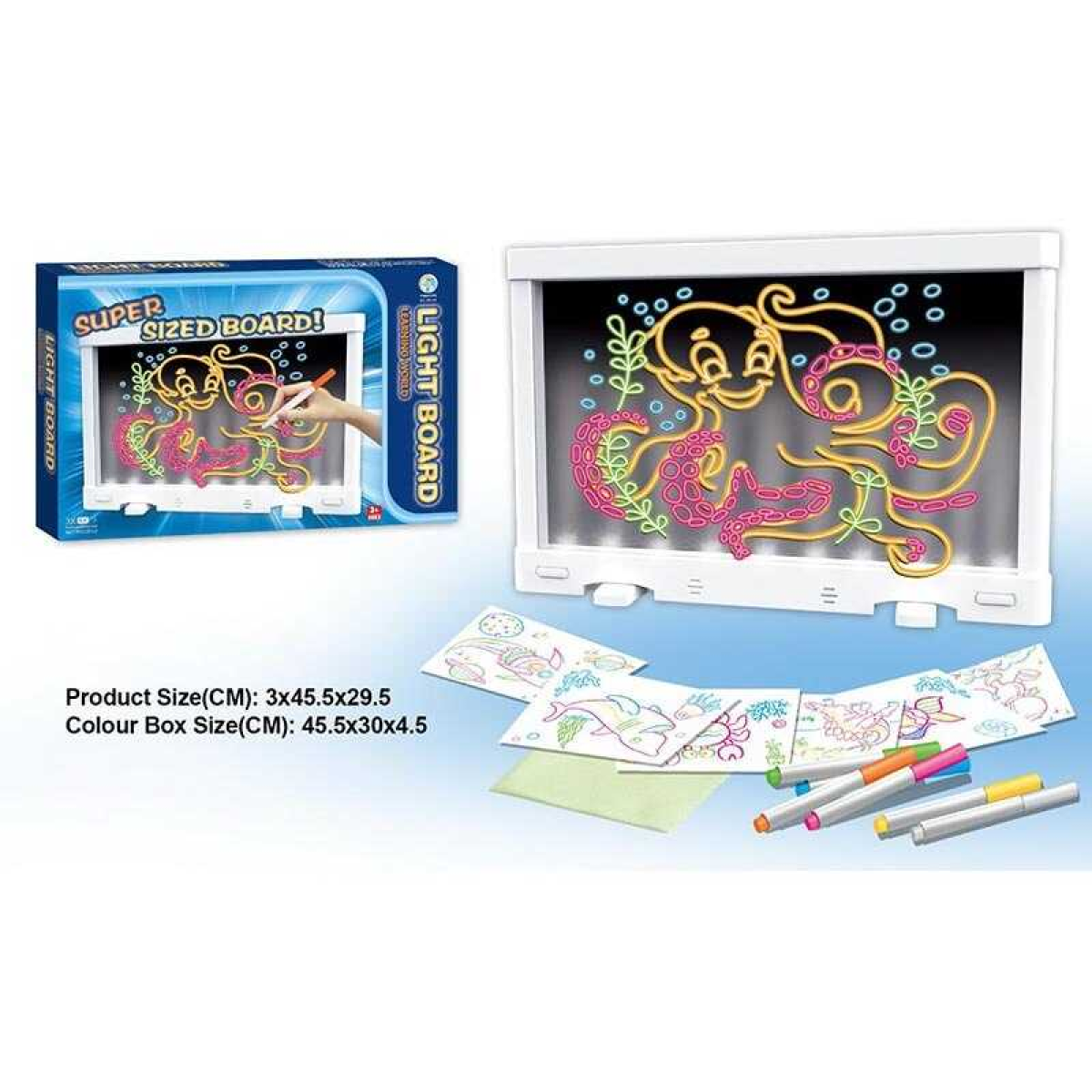 Дошка для малювання YM 19 (36/2) підсвічування, 6 маркерів, 6 двосторонніх трафаретів, в коробці