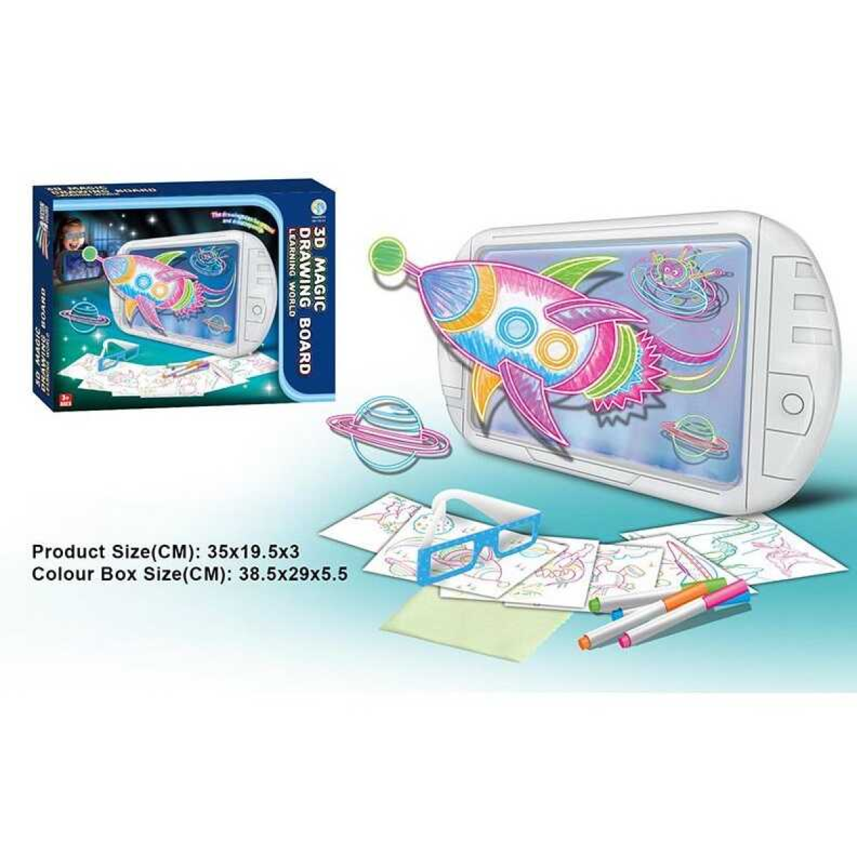 Дошка для малювання YM 21 (48/2) підсвічування, 6 двосторонніх трафаретів, 4 маркери, 3D окуляри, в коробці
