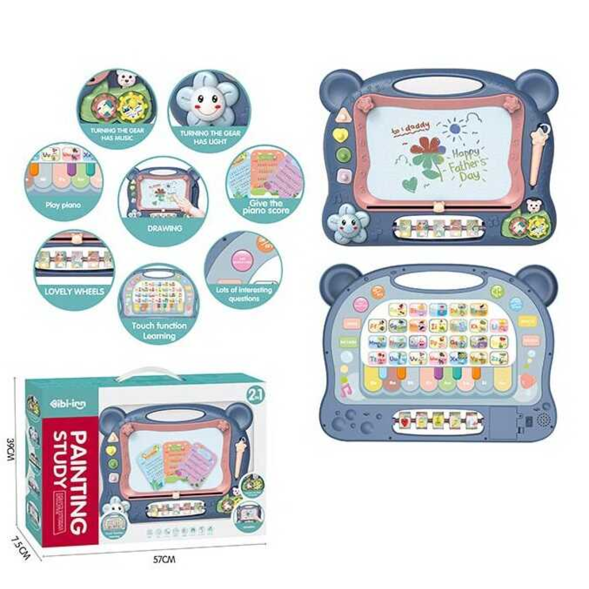 Дощечка 648 A-65 (12/2) світло, звук, англійською, сенсорна панель, піаніно, на батарейках, в коробці