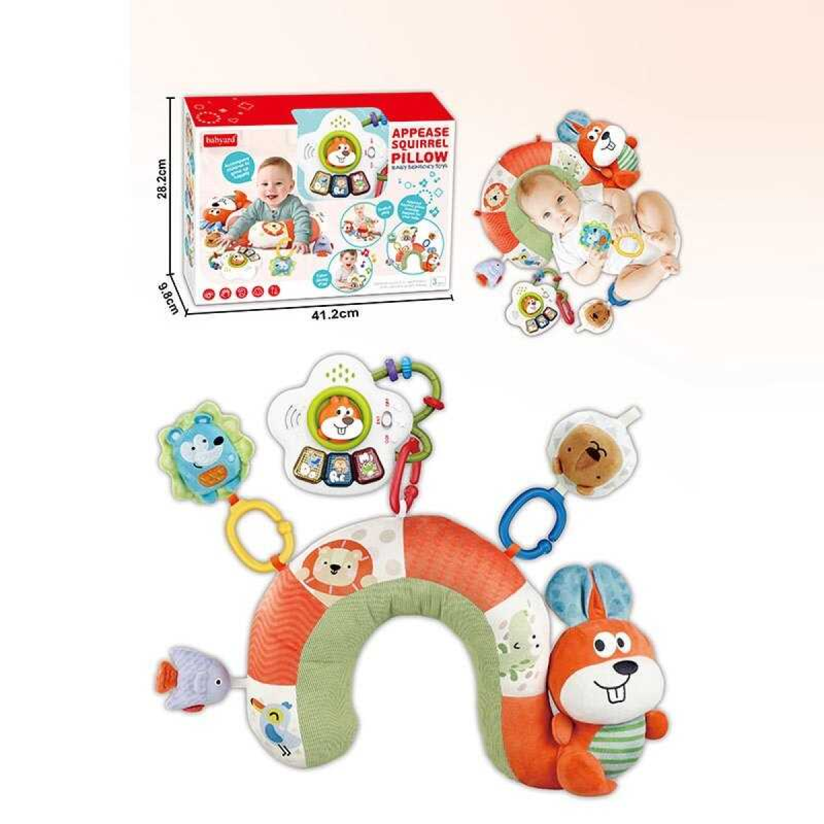 Розвивальна подушка BY 122 (12) “Білочка“, підвіска-піаніно, 2 режими, мелодія, звуки нот і тварин, світло, пискавка, брязкальце, в коробці