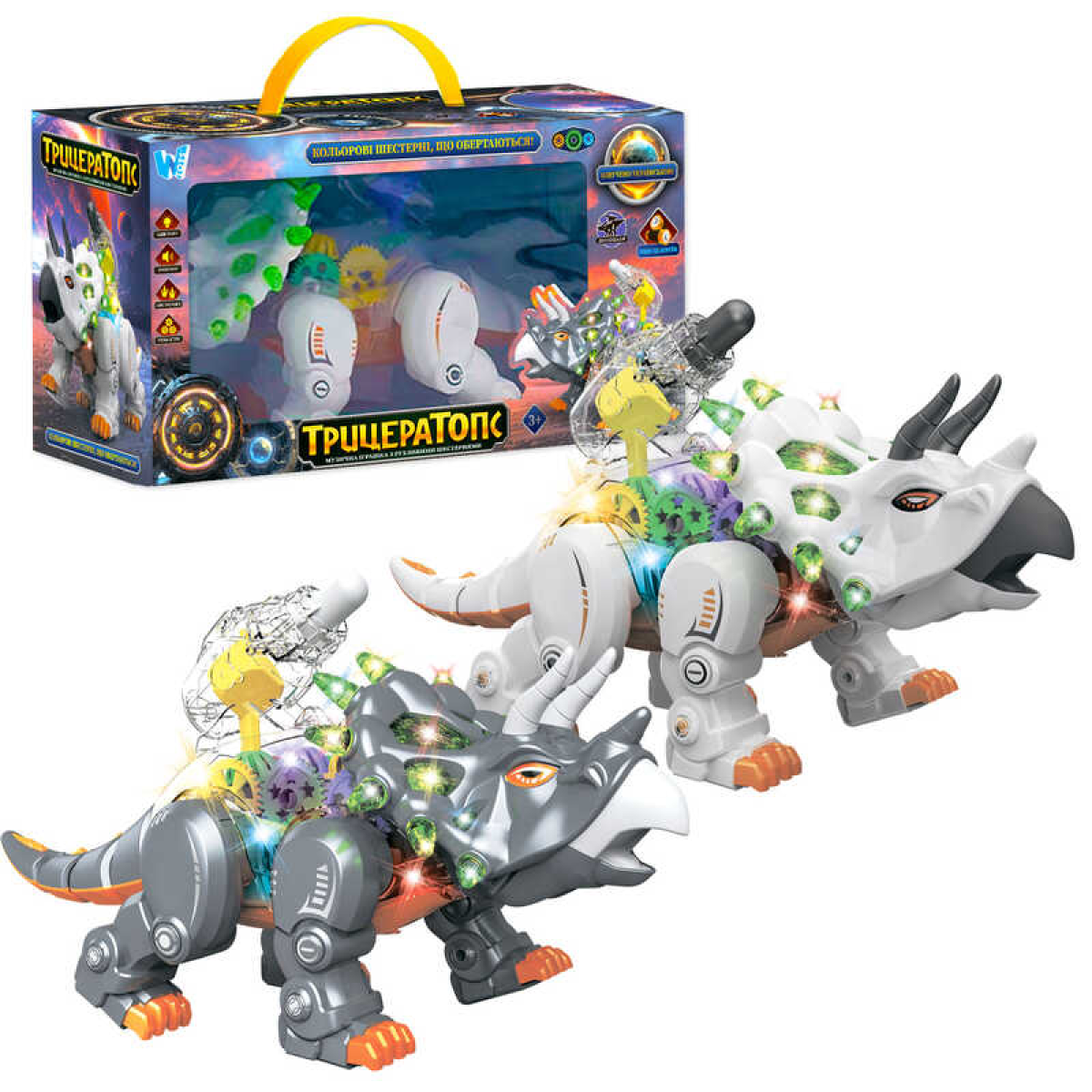 • Динозавр “Трицератопс“ ТК-14638 (24) “WToys“, ОЗВУЧУВАННЯ УКРАЇНСЬКОЮ, пісенька, ходить, світло, рухливі шестерні, в коробці