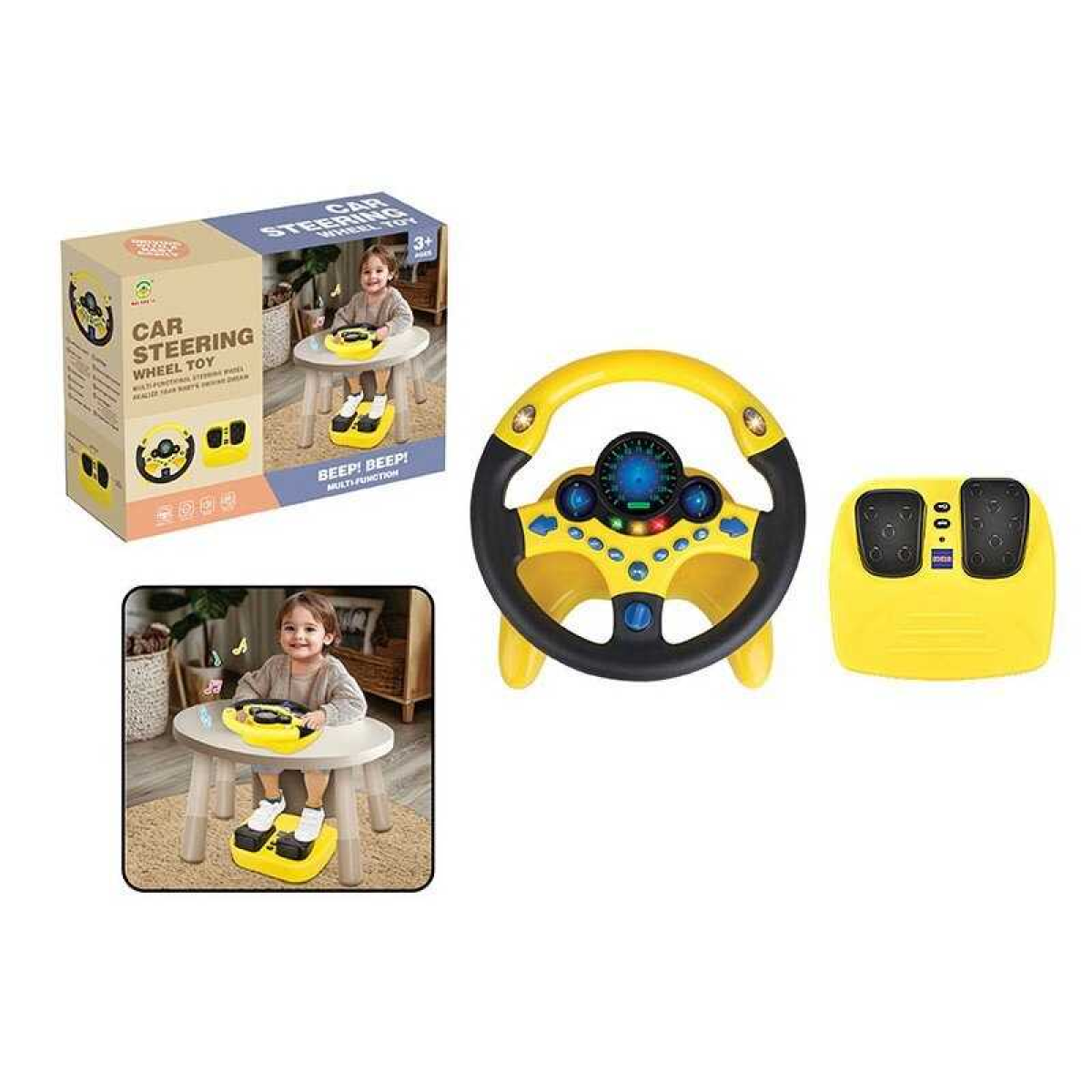Кермо 2192 E-70 Штрих = 92422 (24) колір ЖОВТИЙ, звукові ефекти, озвучування англійською, веселі мелодії, підсвічування, педалі гальма та газу, присоски, в коробці